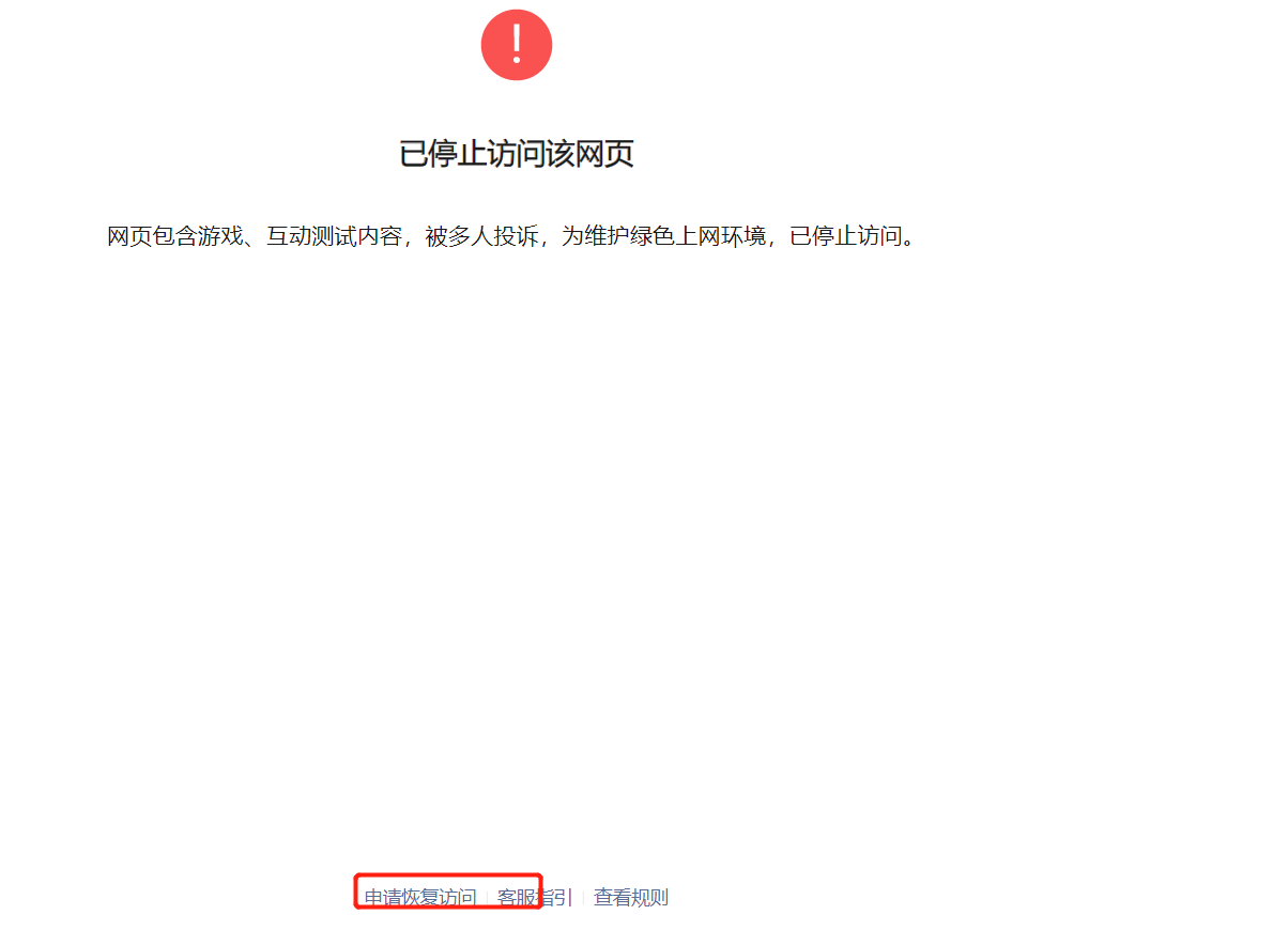 点击“申请恢复访问”链接申诉恢复: