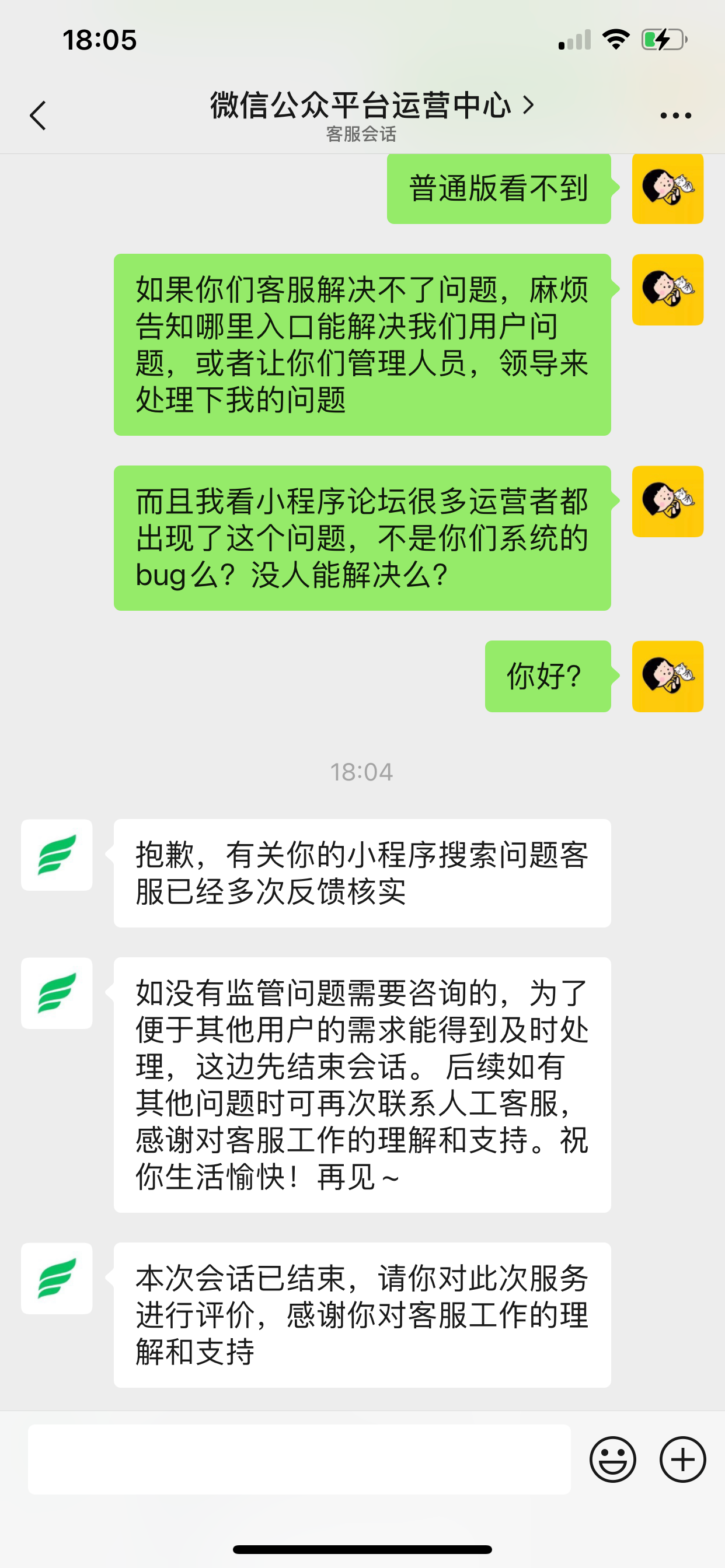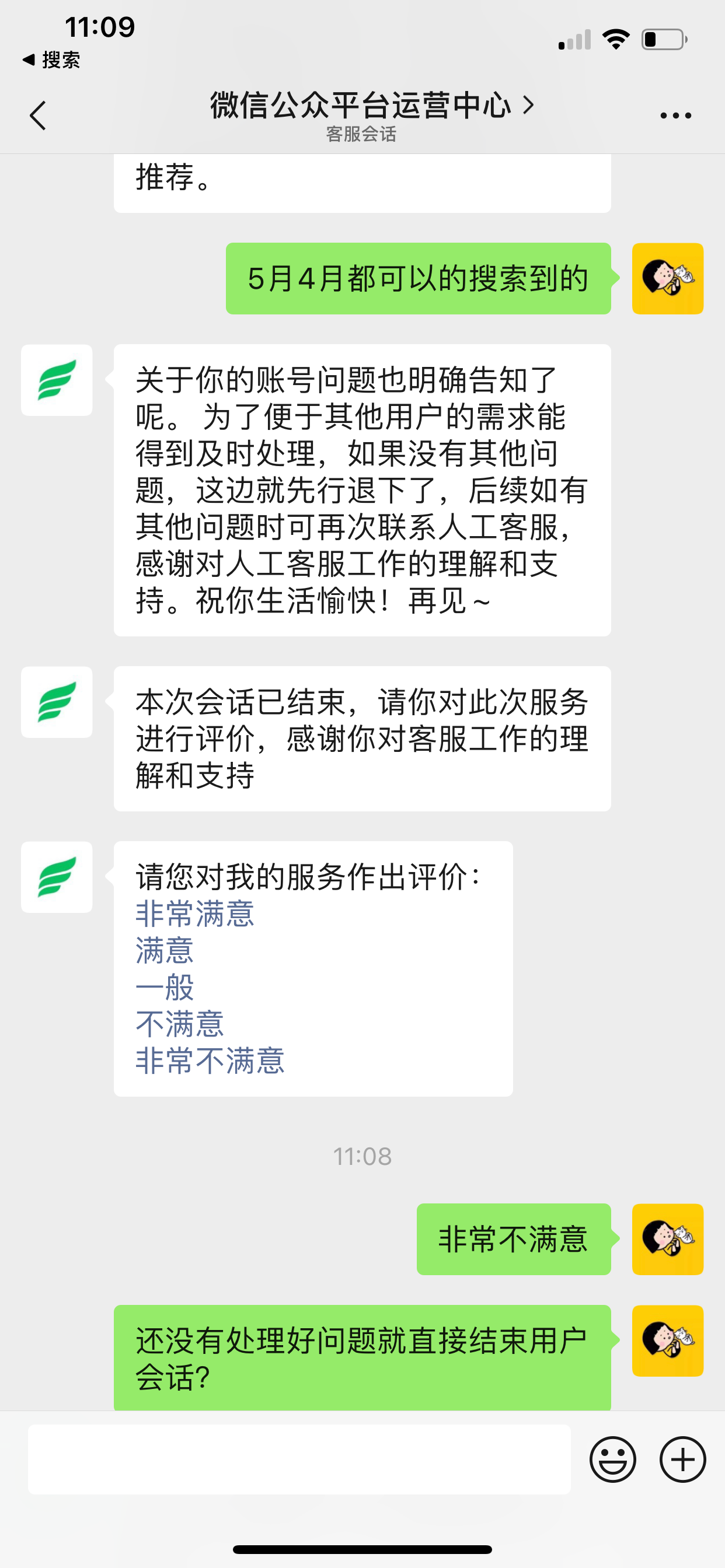 没有技术人员解决问题第五天,无人解决每天问一次,账号:太阳码95折券,id:wx3d9922af99fbadee,gh_7ca6c593de04,搜索关键词无法搜索,日上,日上95,日上95折等,只能全称,账号无违规,也认证了备案了,坚持运营了几年了突然这样,严重影响我们运营者,和用户的使用,无人解决只会机器人回复