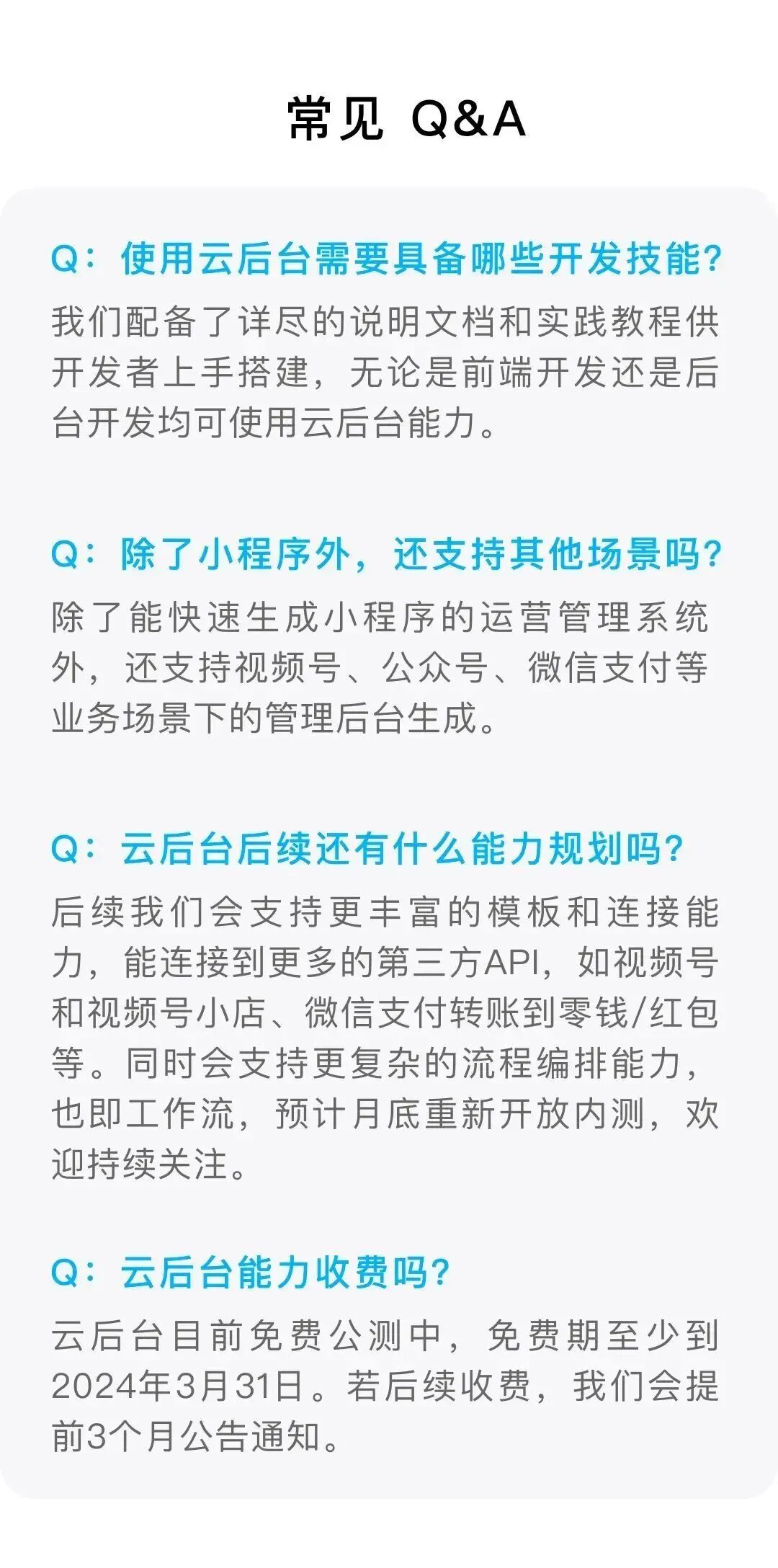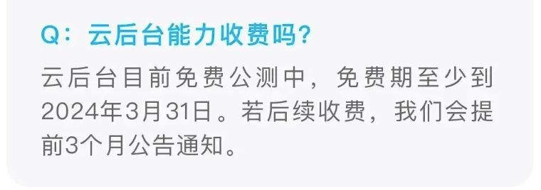 感谢大家关注和体验云后台能力!我们收到了开发者朋友们的热切反馈,我们将认真参考大家提出的意见,评估需求点,在后续的版本和推文中与大家同步反馈内容和需求进展,与各位开发者朋友们一起打造更好的生态能力!