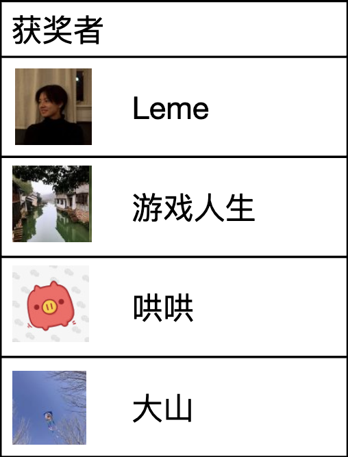 我们精选以下 4 位用户的回答并送出周边礼品一份。2023 年 12 月 22 日前,我们将通过社区私信联系以下得奖者确定邮寄地址,如一周内未收到回复(即2023年12月29日 0点前),视为放弃奖品。