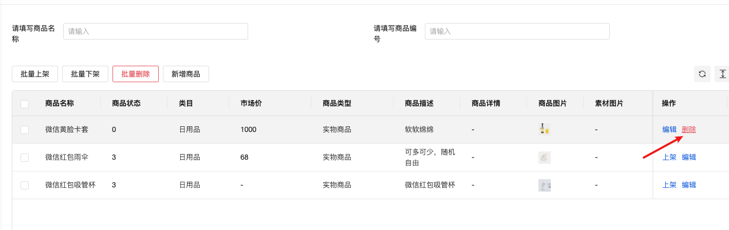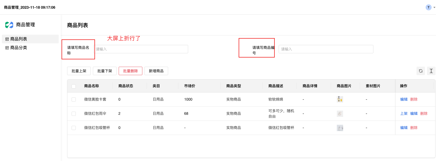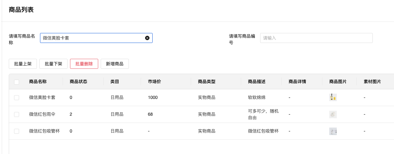3、这两个是搜索功能吗?搜索按钮没看到,回车键不生效。商品编号在哪没看到。