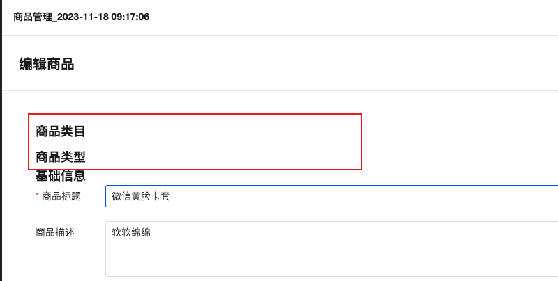 6、商品类目和类型无法选择。