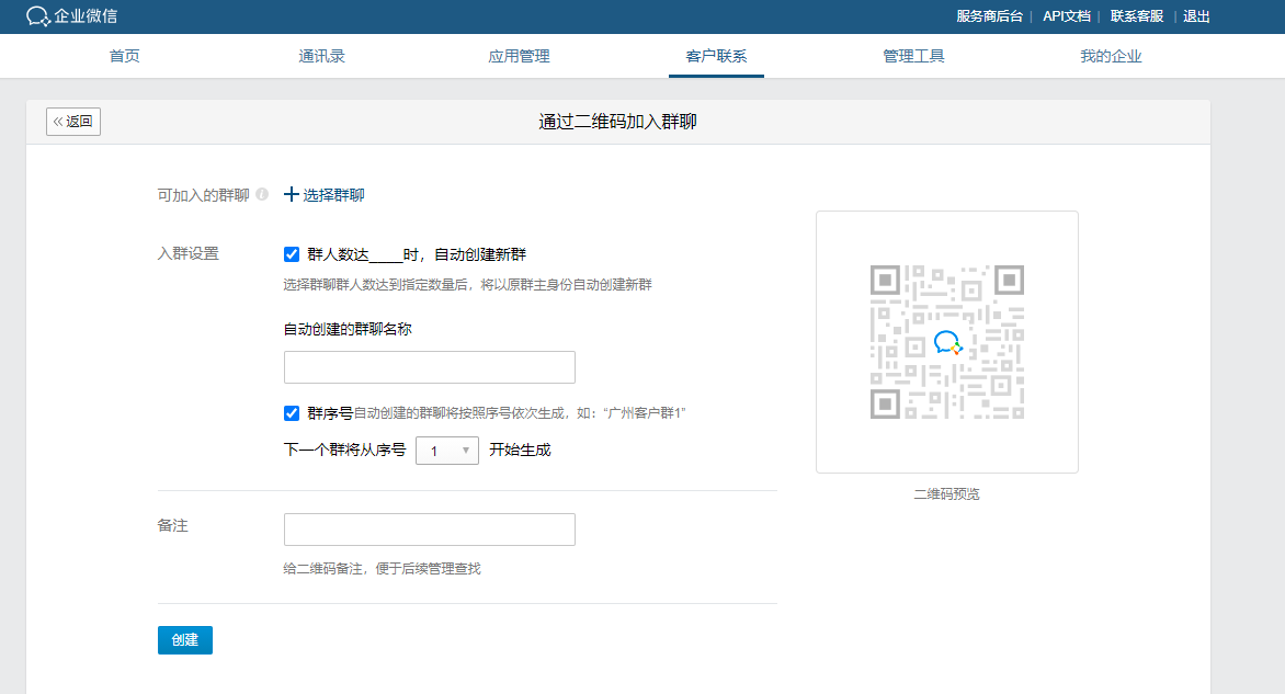 这与自动扫码进群,群满自动扩建新群的初衷相违背。建议取消200人扫码限制,或者自动创建新群的规则改为“群满xx人即创建新群”,如下图所示: