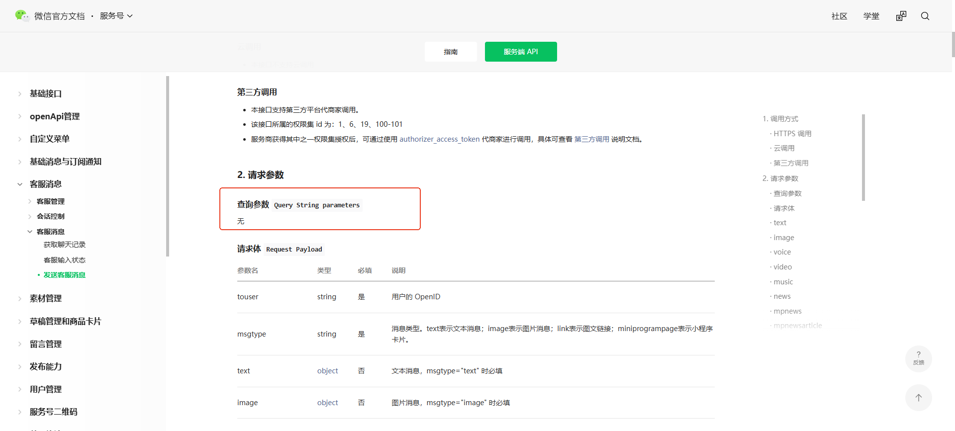 服务号发送客服消息API需要传入accessToken查询参数,页面没有体现
