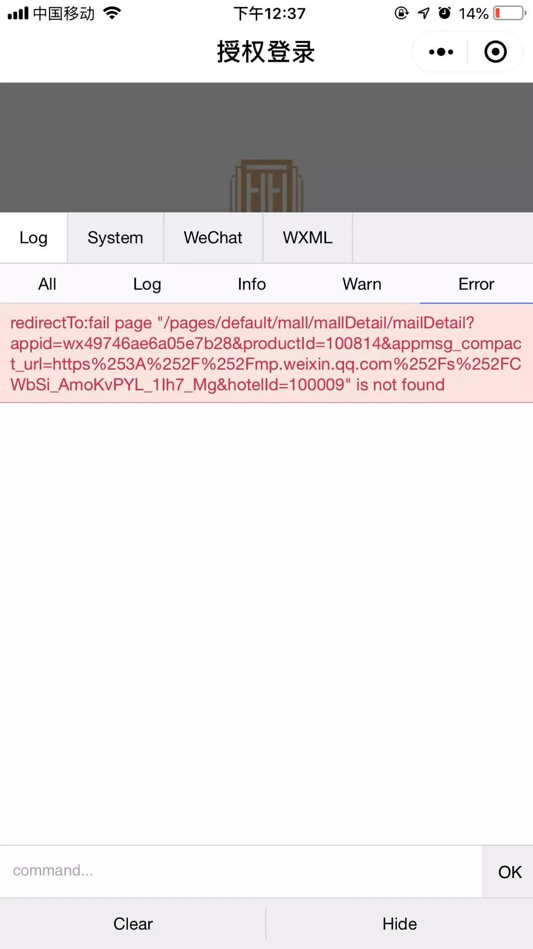 redirectTo:fail page "pages/default/mall/mallDetail/mallDetail?appid=wx49746ae05e7b28&productId=100814&appmsg_compact_url=https%25253A%25252F%25252Fmp.wexin.qq.com%25252Fs%25252FCWbSi_AmoKvPYL_1lh7_Mg&hotelId=100009" is not found