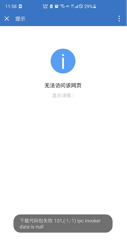 有用户反馈在企业微信中打开小程序直接报错:err:UNKNOWN errCode:0,errMsg:ipc invoker data is null