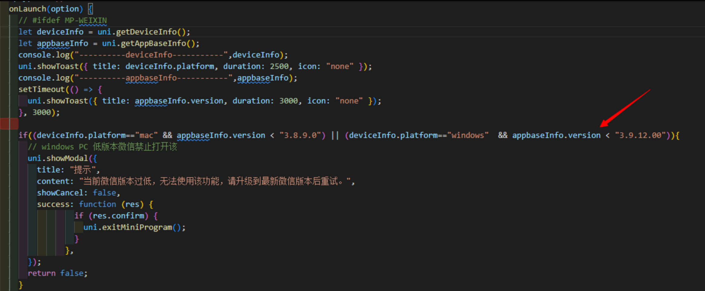 这个得看你appbaseInfo.version里的函数怎么判断了