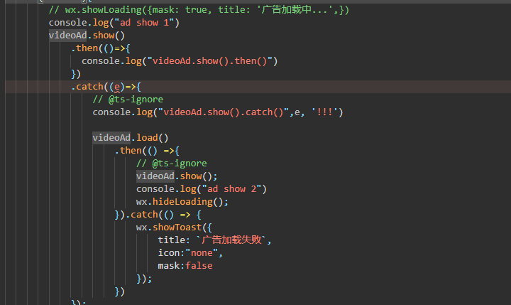 - 关闭广告时触发catch() ,错误为:TypeError: Cannot read properties of null (reading 'appid'),具体错误在下面