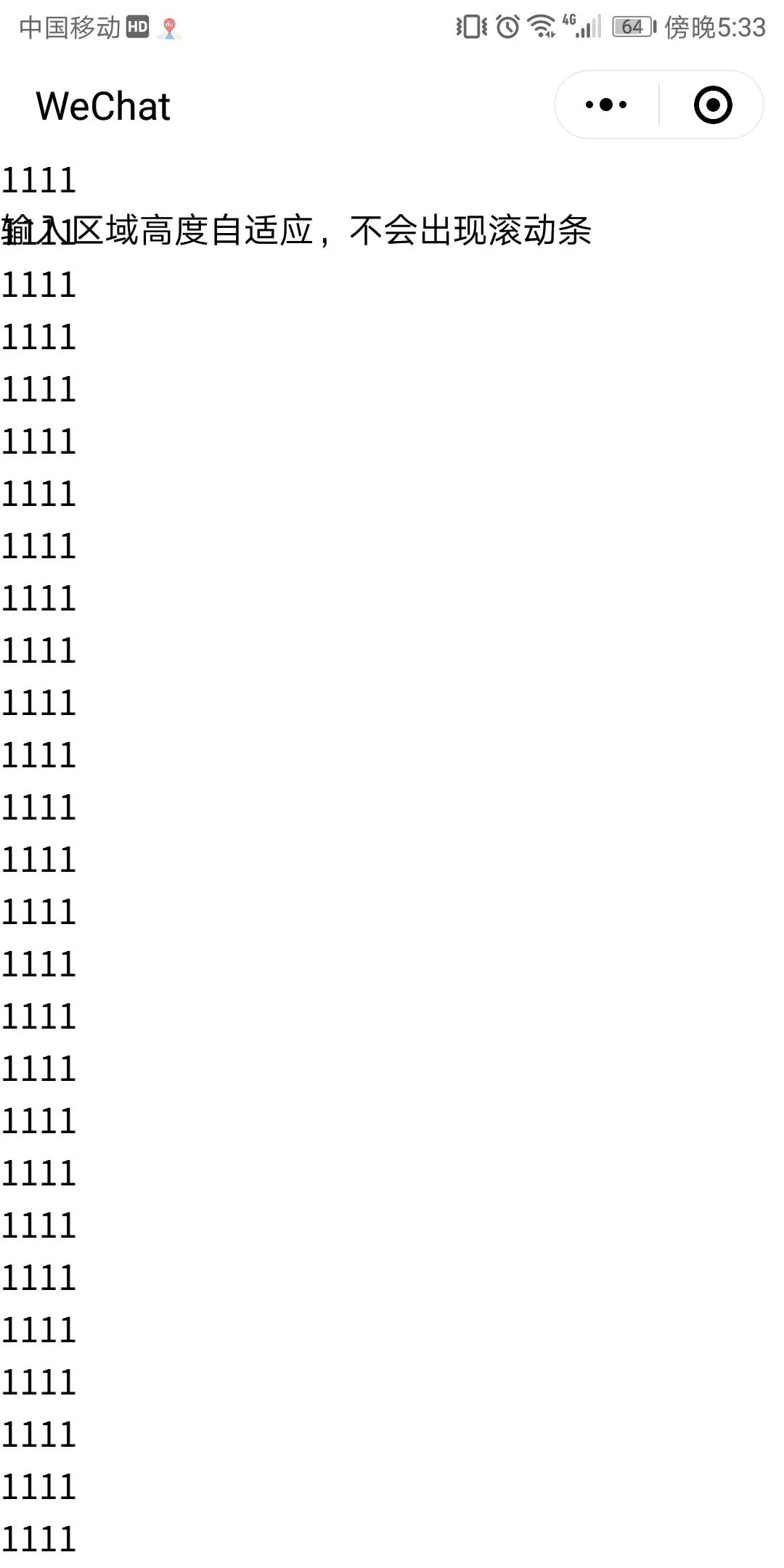 <textarea fixed='true' value='输入区域高度自适应,不会出现滚动条' bindblur="bindTextAreaBlur" auto-height />