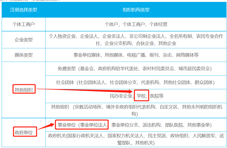 按照我们的《组织机构代码证》上的机构类型,我们是事业单位法人;微信提供的参考图例又将学校划为其他组织类型