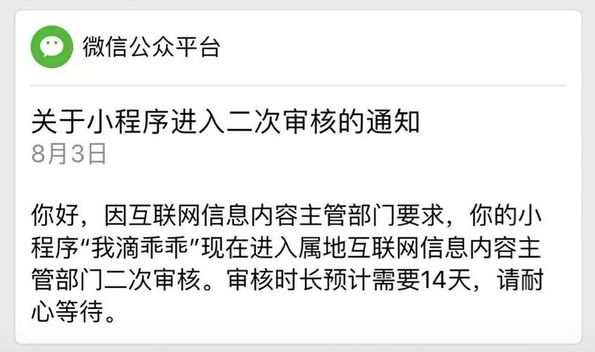 社交、时政类小程序需要报备到小程序的属地网信办进行二次审核,网信办审核时间为14个工作日。