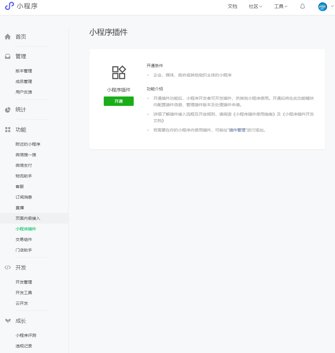 左侧菜单【小程序插件】→ tab【基本设置】→ 服务器域名