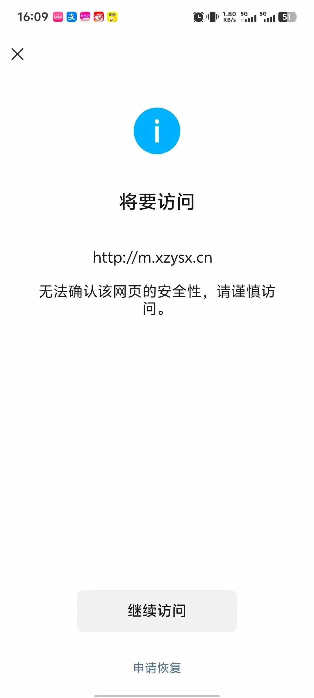 您好,域名xzysx.cn在西部数码注册并通过优刻得备案通过,http://m.xzysx.cn浏览器访问正常,我是网站开发者,访问时间如图2025/9/3,点开网址提示。“网页包含诱导分享、关注等诱导行为内容 为维护绿色上网环境,已停止访问”经检查网页里没有不安全的内容,请核实后帮忙解除拦截,谢谢!尽快处理,急急急,现在需要打开使用,谢谢