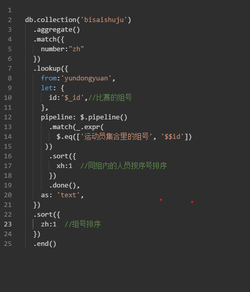 return await db.collection('bisaishuju').aggregate().sort(event.px).match(event.match)