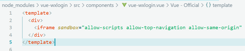 打开node_modules包中找到vue-wxlogin包,进入到vue-wxlogin.vue组件,在iframe标签的sandbox属性中加上allow-same-origin再打包发布即解决问题