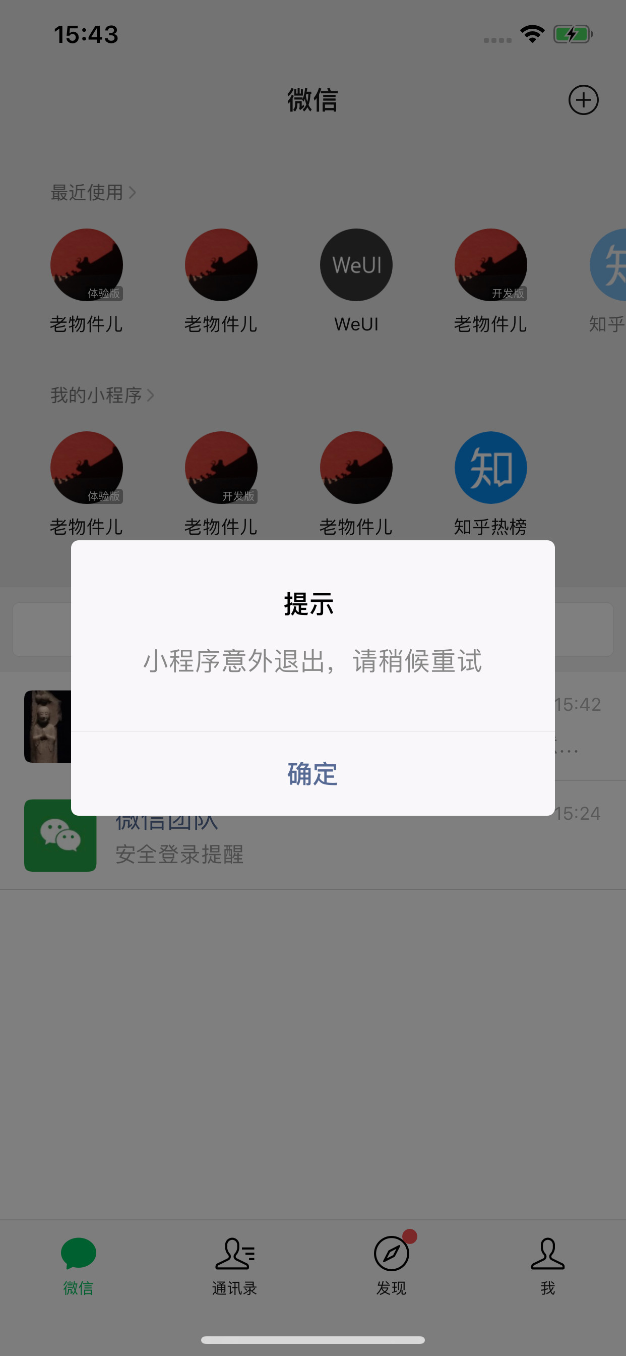 原来小程序在iphone6和6s上会经常出现"小程序意外退出,请稍候重试"的提示. 发帖咨询后给的原因是6的ram只有1G, 手机性能不足导致的.