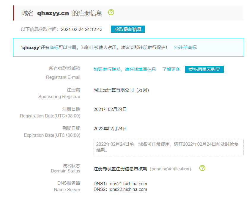 有可能是这样的,这个域名以前违规过。被禁封了,被别人弃用了。