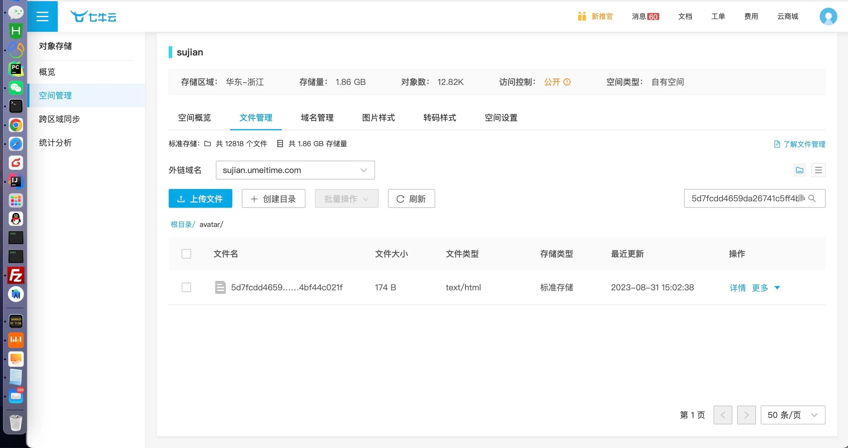 我这个域名是七牛云存储图片存储的二级域名,根据地址路径规则/avatar/来看,是一个用户的头像地址。我去七牛云里面找到了这个文件,不可思议的是这个文件大小只有174b,格式是text/html。。这样的文件怎么就成了违规的文件了呢?谁会从我的小程序里面抓包抓到自己的头像,然后拿去提交微信投诉?况且这个文件无法访问的啊。
