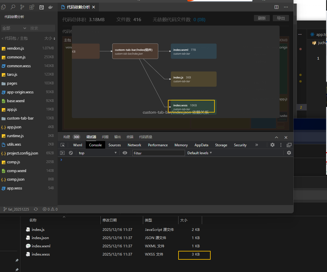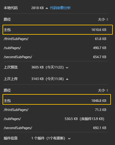 如图本地代码依赖分析,文件大小与电脑存储盘显示大小相差近三倍。什么原因?