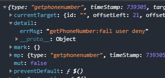而在真机和开发工具中,该操作的errMsg为:"getPhoneNumber:fail user deny"