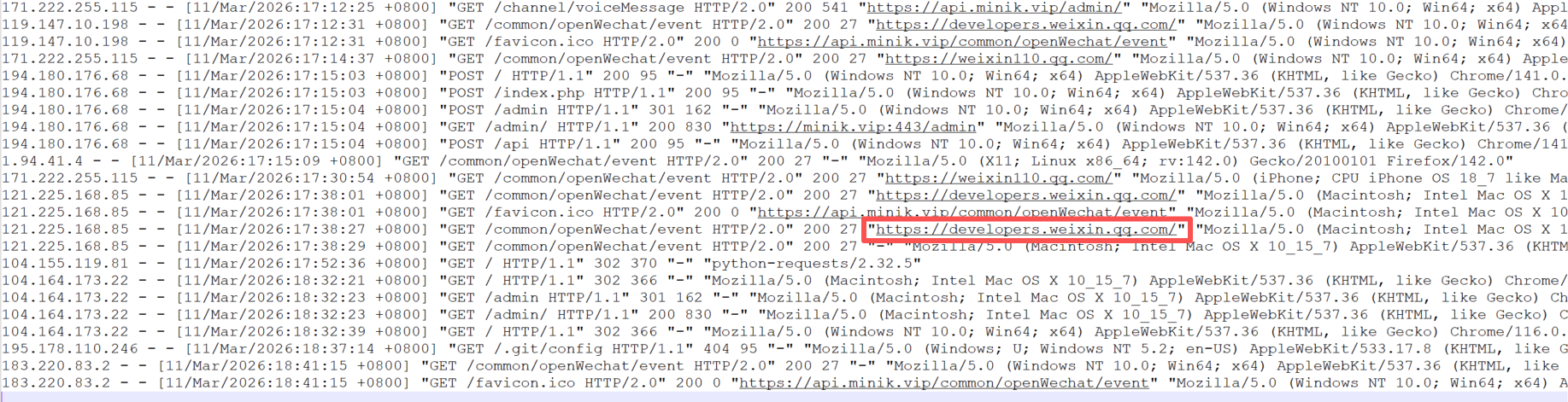 另外,请参考文档https://developers.weixin.qq.com/doc/oplatform/Third-party_Platforms/2.0/operation/thirdparty/alarm.html加入第三方告警群,告警信息群会将微信请求的clientip,错误信息,对应域名,对应域名解析的IP地址等信息推送至告警群中。根据告警群的信息,把对应的ip地址加入白名单,允许其访问你们的网络。