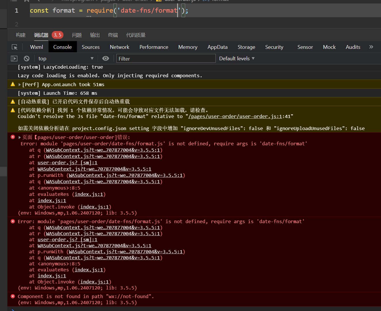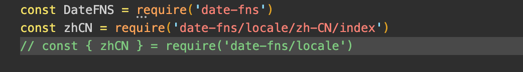 构建成功之后,require date-fns的基本的方法是ok的,但是在使用locale模块的时候,产生了引入(undefined)错误.
