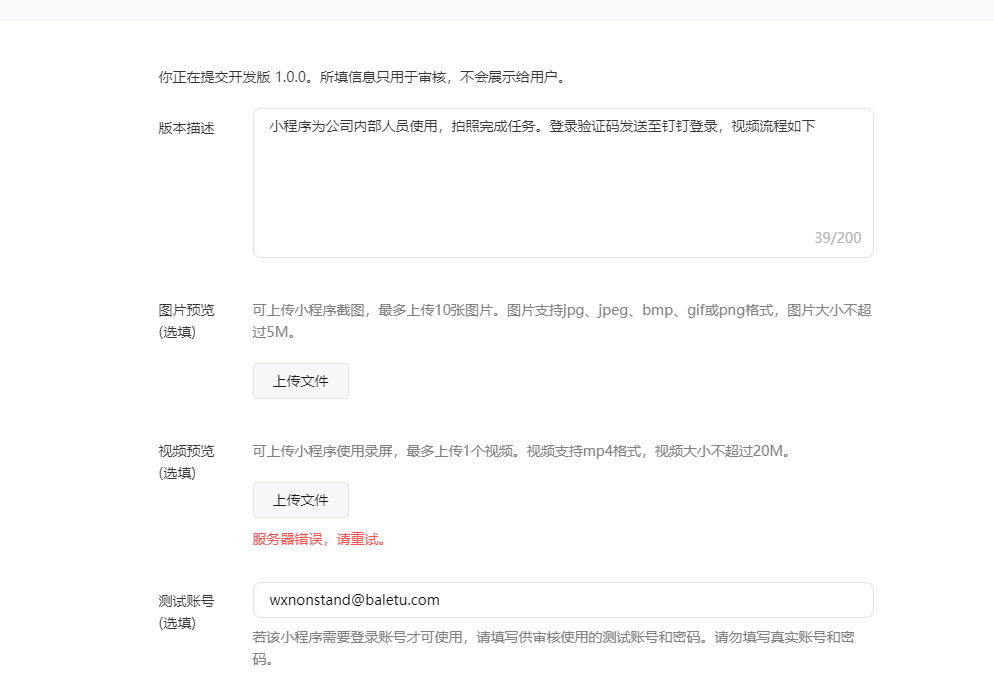 公司新开发一个小程序,使用钉钉验证码登录,不发手机短信。当提交审核的时候,视频一直传不上去,导致审核失败