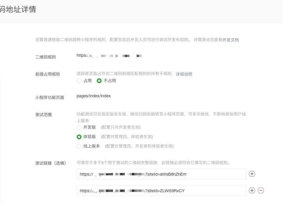 4.再次从微信app的“扫一扫”,扫码进入小程序,二维码带参数:https://api.xxx.com/?siteId=bbb