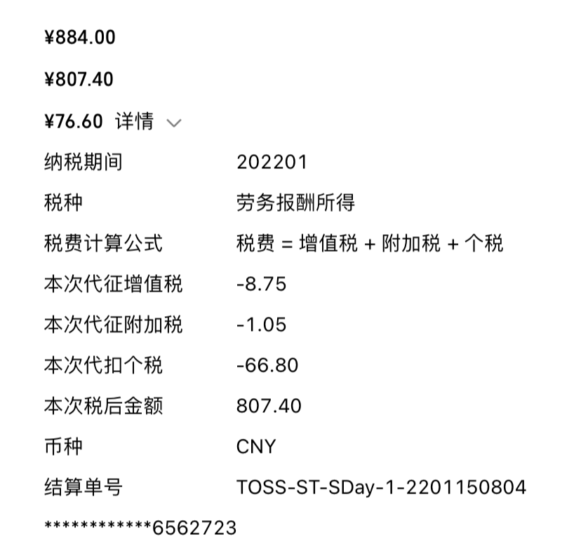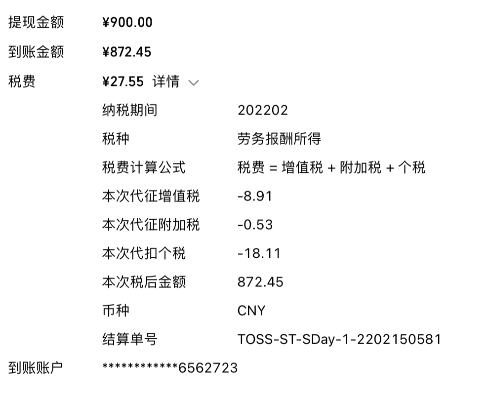 一月和二月提现的金额分别为:884 和 900 ,但是税费扣缴比例却严重不一样,请给个解释。