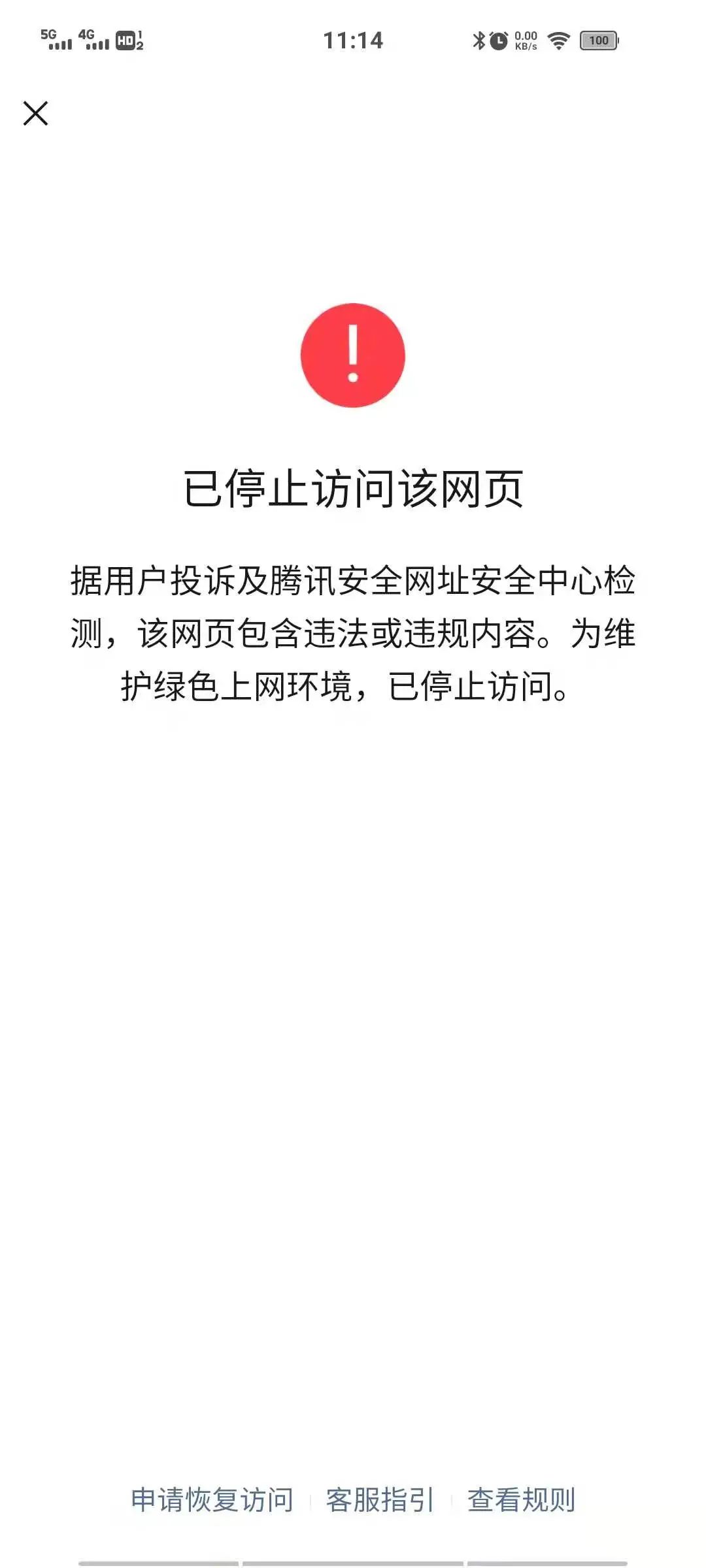 你好,经核实域名shop.qingyunteng.com被手机管家拦截,此处仅处理被微信暂停提供微信内直接访问的服务的外部链接的申诉问题,此服务不在受理范围,请登录手机管家官网【http://gj.qq.com/online_server/complain_url.html】自行申诉,知悉。