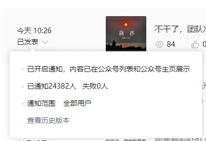 全部都通知了,但是只有一小部分粉丝能收到通知,其他的都得点开公众号主页才能看到