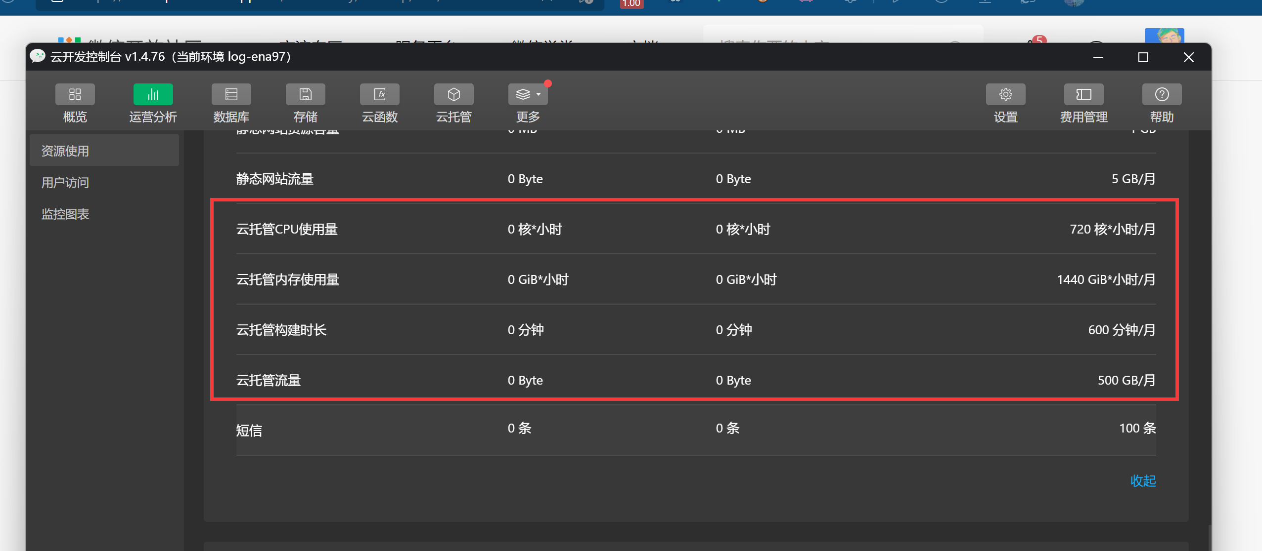 开发者工具上,云开发中云托管已停止更新,也无法获得免费额度了。请使用微信云托管。