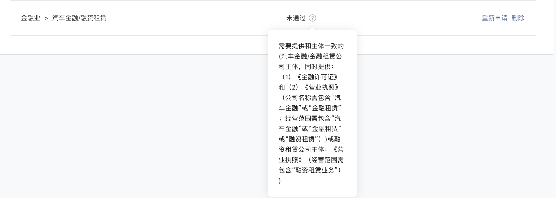 手头的资料有对应的服务提供方的营业执照和金融许可证等资料。