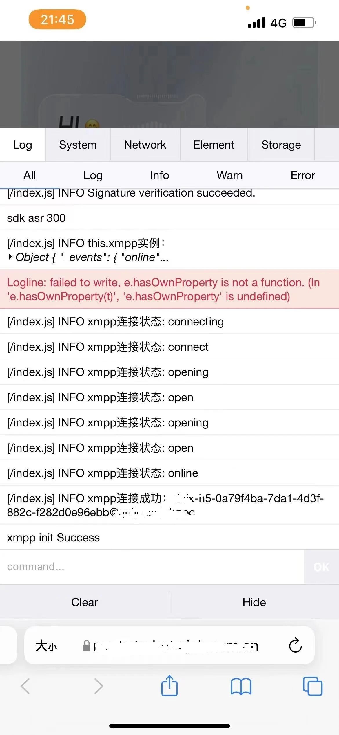 使用安卓手机,使用微信浏览器或其他浏览器,无论请求域名是否带端口号1344都可以连接xmpp服务器。连接成功日志截图: