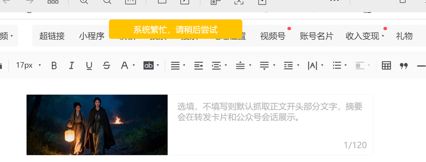 发布文章一直显示系统繁忙什么原因?
