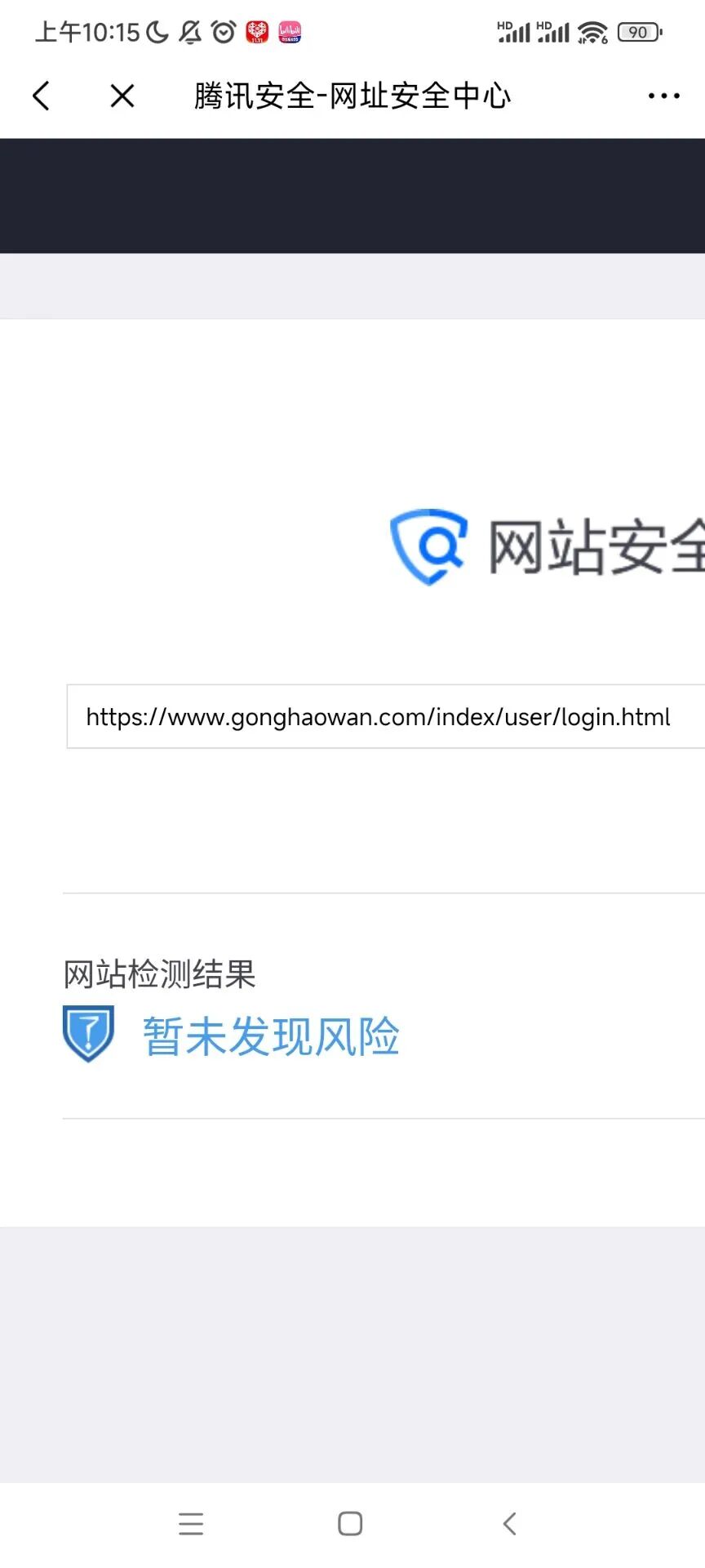 登录页面链接风险拦截了,在腾讯安全中心查询没有被拦截,但是在qq一直提示拦截,申请解除已经10天无任何回复,https://www.gonghaowan.com/index/user/login.html