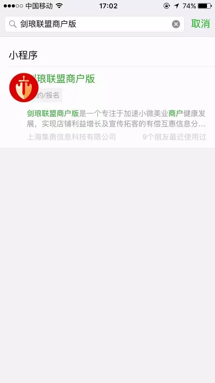 微信小程序搜索:---->点击小程序(剑琅联盟商户版)