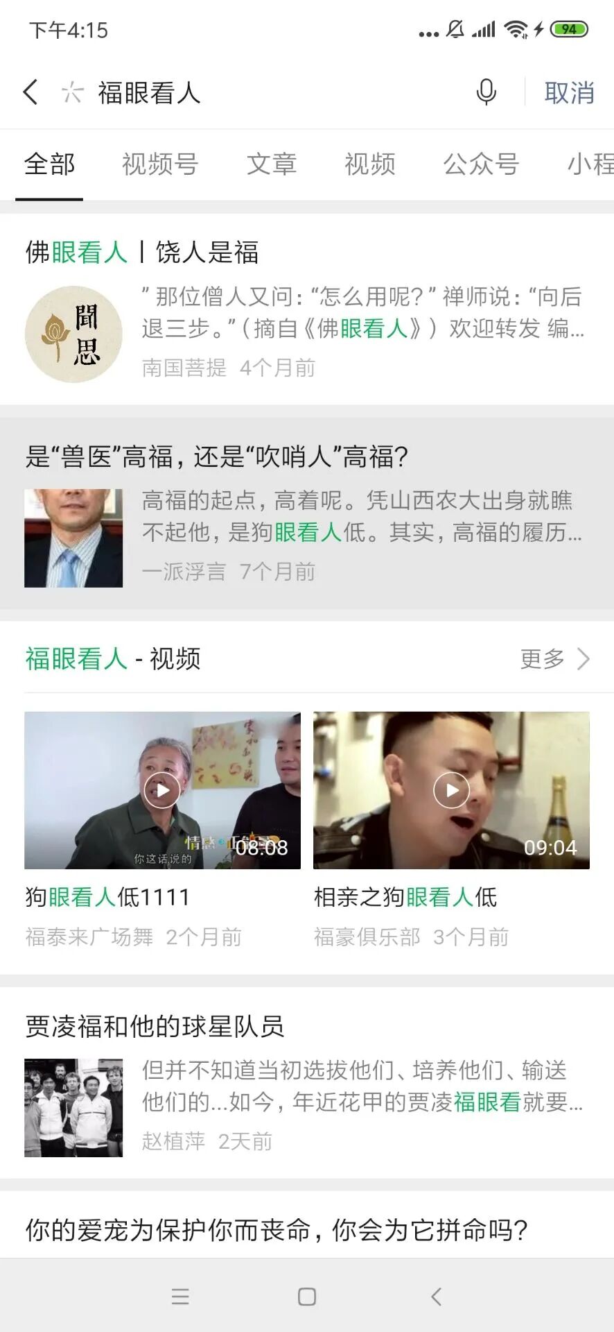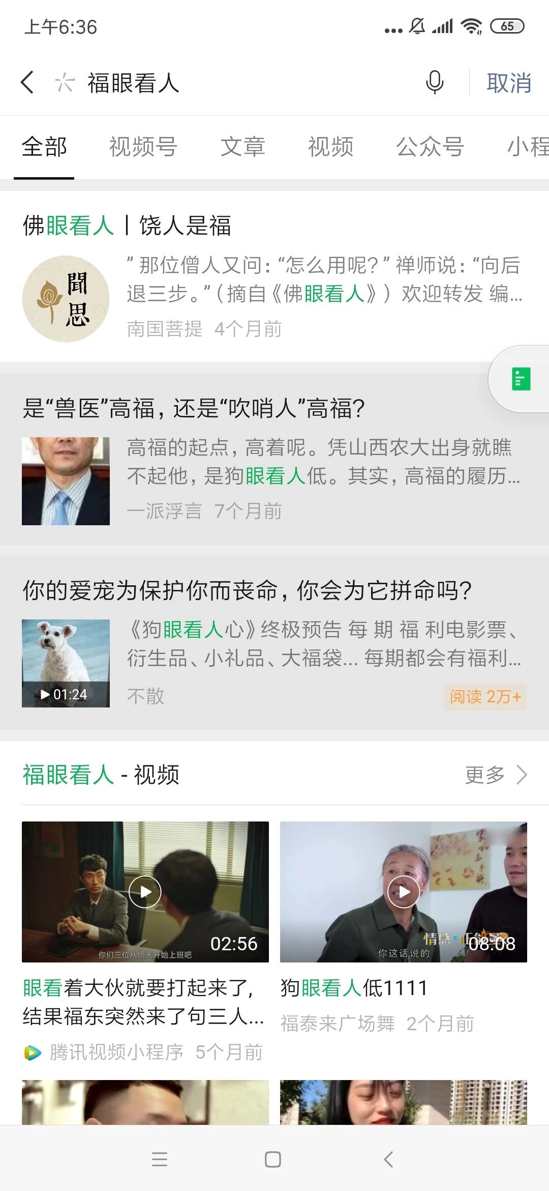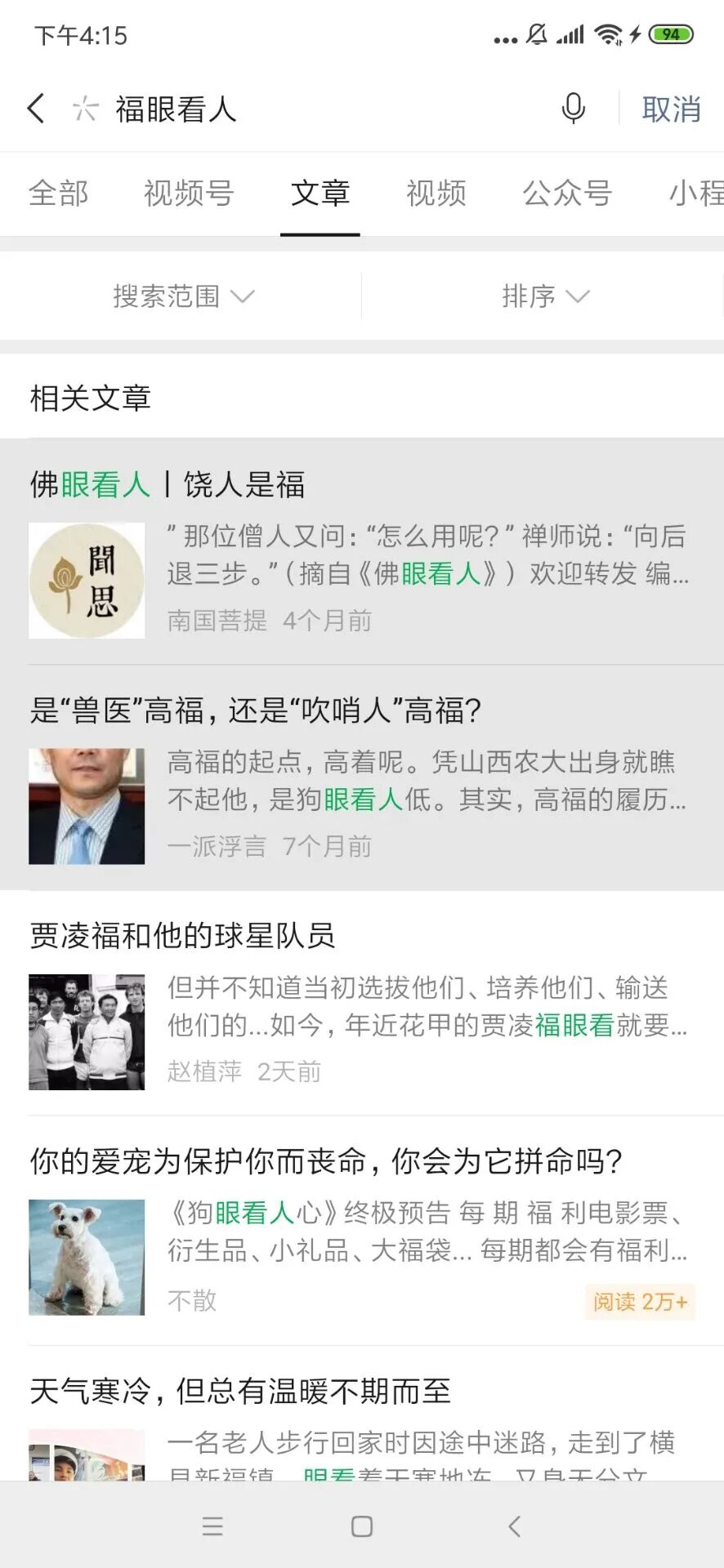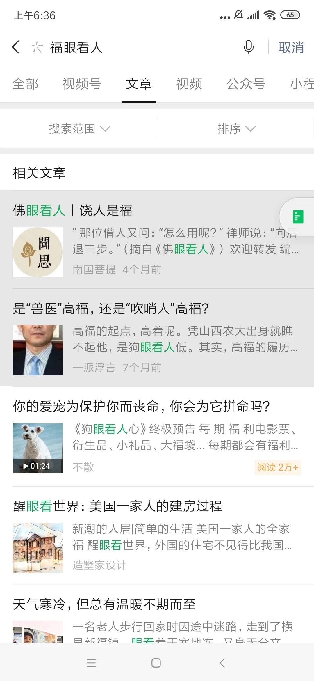微信公众号发的文章,在微信搜一搜里搜不到。公众号,名称可以正常搜索。以前是可以搜到的,现在所有文章都搜不到了 公众号名称 福眼看人 原始id:gh_193891d5cfed