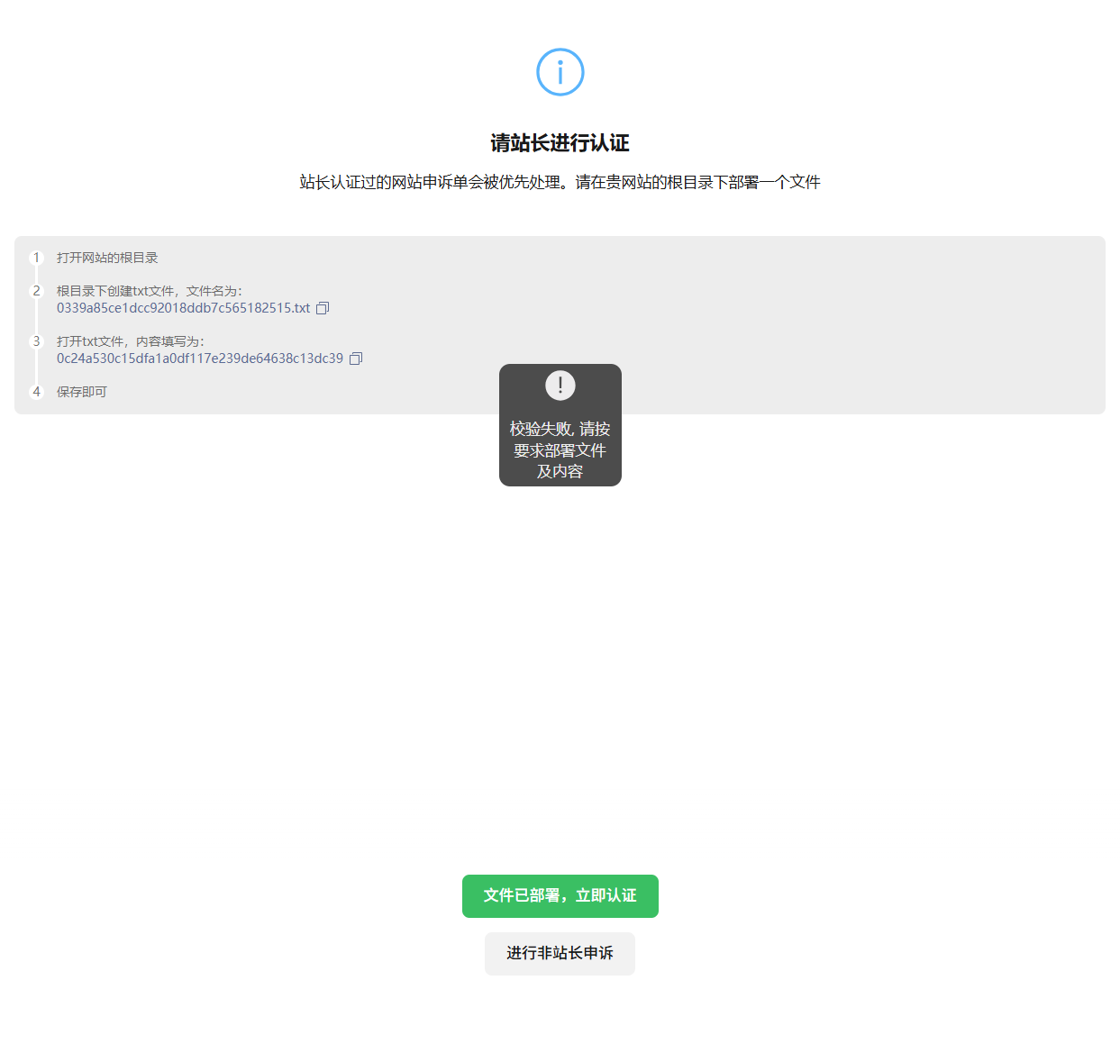 moyumh.cn这个域名当时部署h5, 就内部测试发了两次就被封了,官方让申诉,但是一直校验失败,是啥原因。