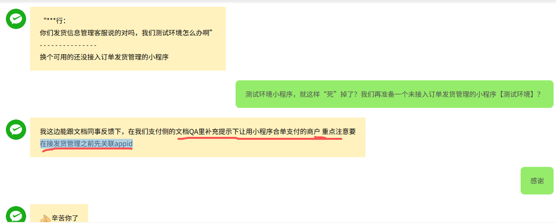 下面是微信支付技术支持回复