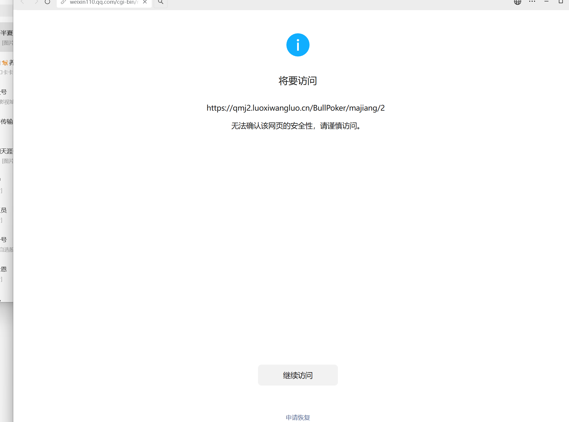 域名qmj2.luoxiwangluo.cn 已通过ICP备案、网安备案,在腾讯安全-网址安全中心查询提示暂未发现腾讯网址安全中心拦截;目前在微信访问网站出现“无法确认该网页的安全性,请谨慎访问”,经检查网页里没有不安全的内容。已多次申请恢复,并未给出具体审核回复。
