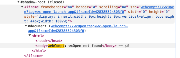 大部分时间微信唤起标签不执行ready事件,也不显示。审查元素,内部iframe提示