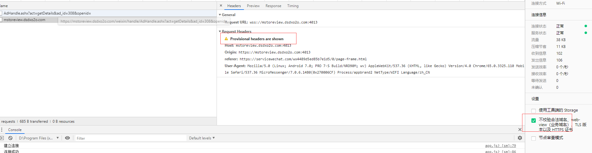 在模拟器上用get请求没问题,在真机上就报Provisional headers are shown