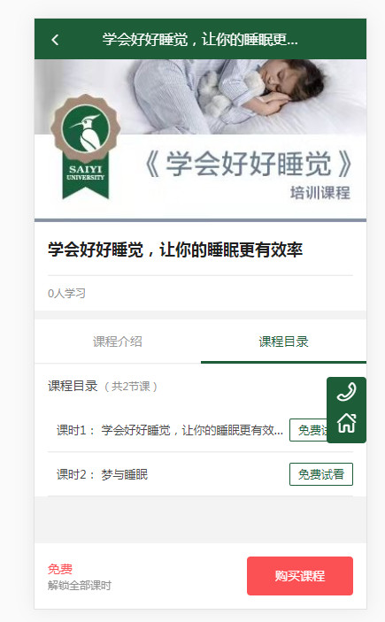 这个网址https://edu.saiyidaxue.com/#/index,随意点击一个课程进去(测试可使用睡眠那个课程,那个是免费的),进入课程详情页,然后点击一节课试看,如课时1,