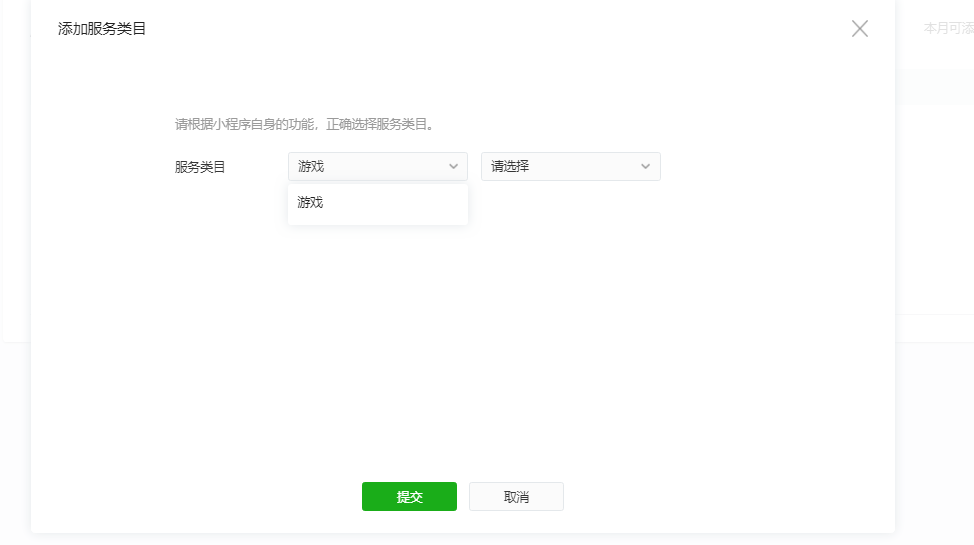 服务类目变更选择后仅有游戏类,无法变更为其他