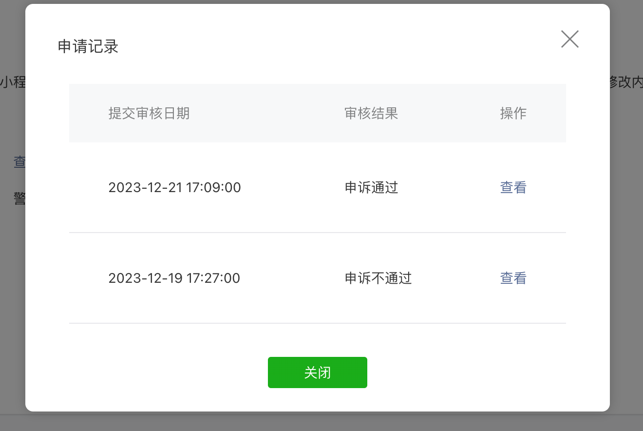 上次的申诉记录及结果