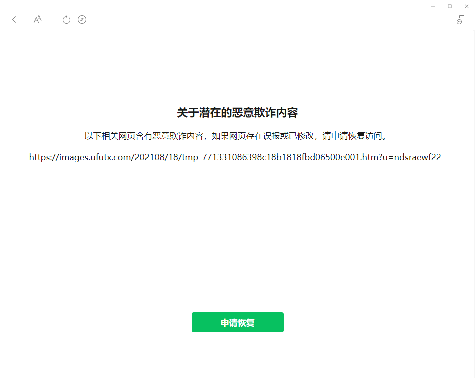 你好,经核实域名ufutx.com下的链接的内容违反《微信外部链接内容管理规范》,请仔细排查并把域名下所有相关违规内容修改并修复安全漏洞后,点击停止访问页面中间的“申请恢复访问”按钮自行申诉,工作人员将于三个工作日内处理你的申诉请求,请耐心等待。具体违规情节:违反了《微信外部链接内容管理规范》第19条,详细规则请参考《微信外部链接内容管理规范》http://weixin.qq.com/cgi-bin/readtemplate?t=weixin_external_links_content_management_specification