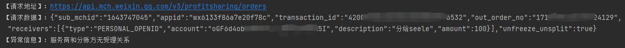有一个服务商,服务商收款,子商户分账,分账接收方已经添加了,子商户分账给个人时返回服务商和分账方无受理关系。
