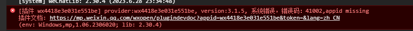 提示很明显:插件id错误,是不是小程序的id作为插件id在使用。