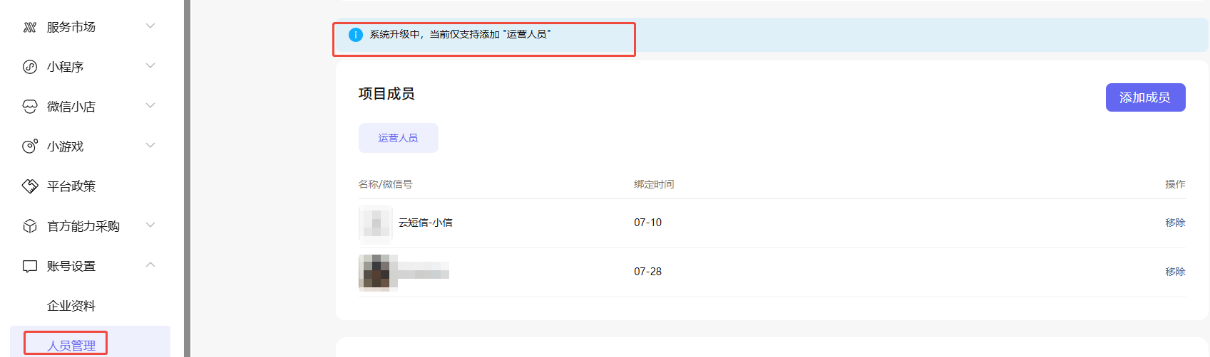 https://developers.weixin.qq.com/doc/oplatform/partner/service_market/provider_guideline/enter_guideline/sph_enter_guideline.html接入的过程中无法添加测试人员